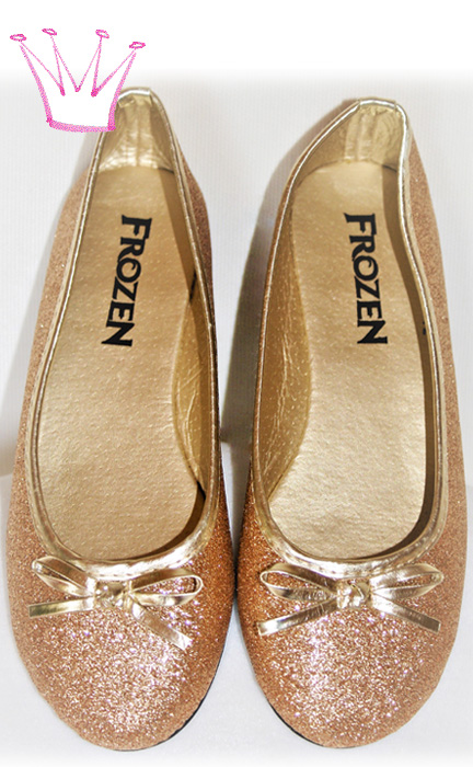 Diese Goldschühchen braucht jede Prinzessin. Sie glitzern und funkeln golden (leicht rötlich gold) und passen zu vielen Prinzessinnen-Kostümen und Kleidern. Dank der angenehm weichen Gummisohle können die Schuhe auch draussen getragen werden.